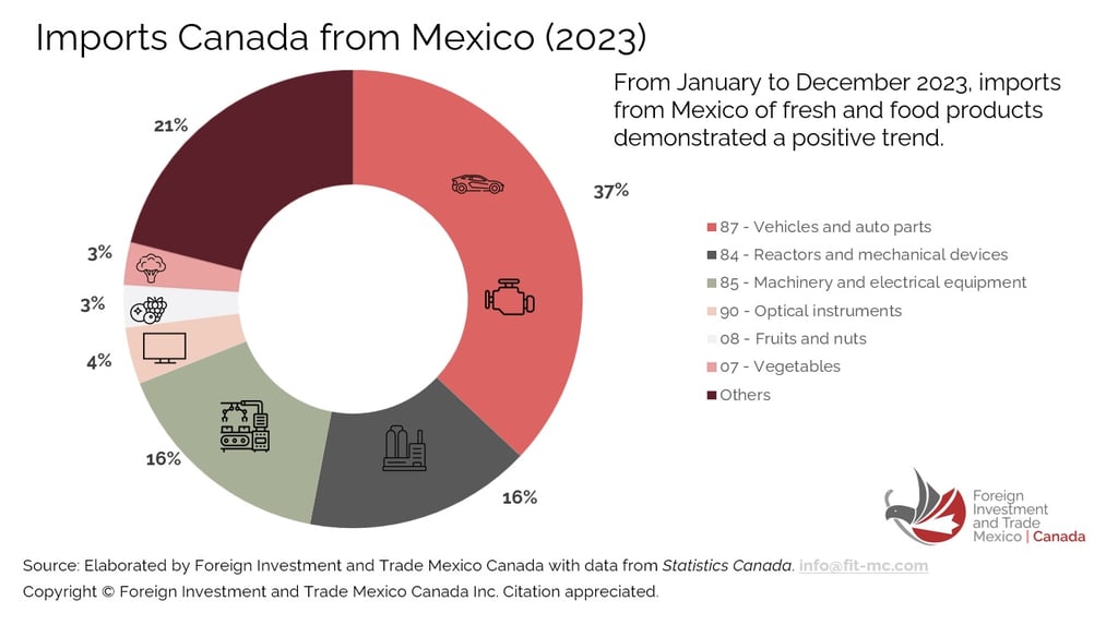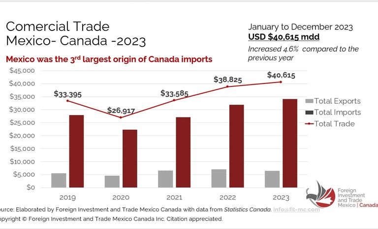 Mexico was Canada’s third-largest source of imports, while Canada ranked as Mexico’s second-largest export destination. In 2023, trade between the two countries grew by 4.6% compared to the previous year, highlighting strong opportunities for continued growth and deepening trade ties.